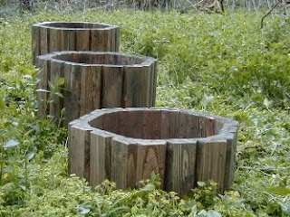 The 3rd board from a 3inch pent rip sometimes has enough bluntness to make an attractive front-board on the meza. I used to cut these in pairs to 6inch pieces, and nail them to make a 10sided pot, but fiddliness and variability has put me off these as a product. A slight variation in width is magnified ten-fold in the eventual pot, and the ten-sided angle is not an easy one to redefine[although I have made a jig for this purpose]. Bases were slices of large [8-9inch] decagons; not easy things to cut on a standard saw-bench!