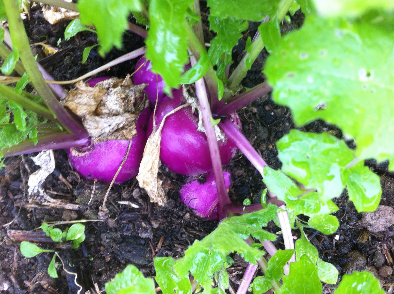 Then I read that turnips can be planted this way, sowing about four seed together. (The turnip is a vegetable that has escaped from the tyranny of size, having had a renaissance as a tender salad crop).