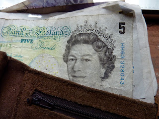 The queen's wad gazes wanly from my wallet, giving a faint smile of encouragement for my enterprise.